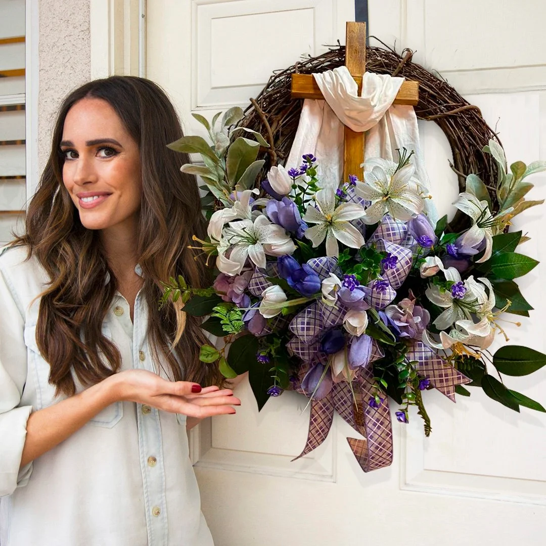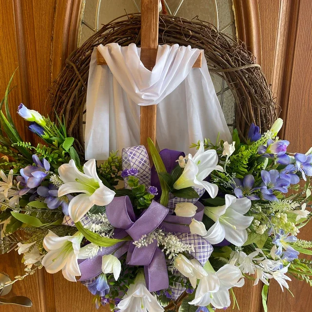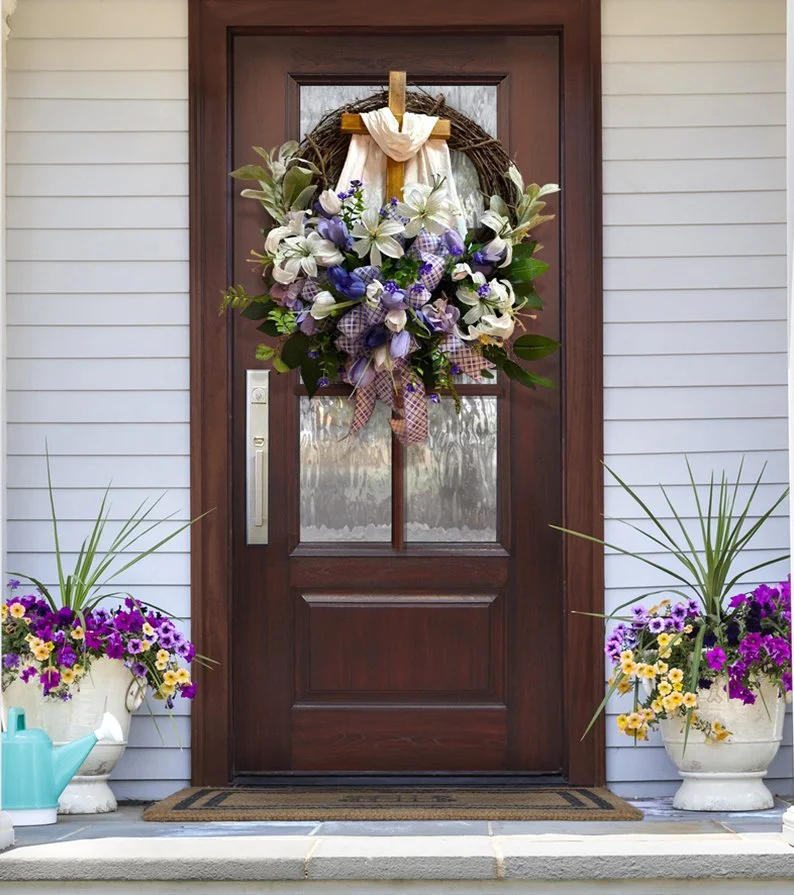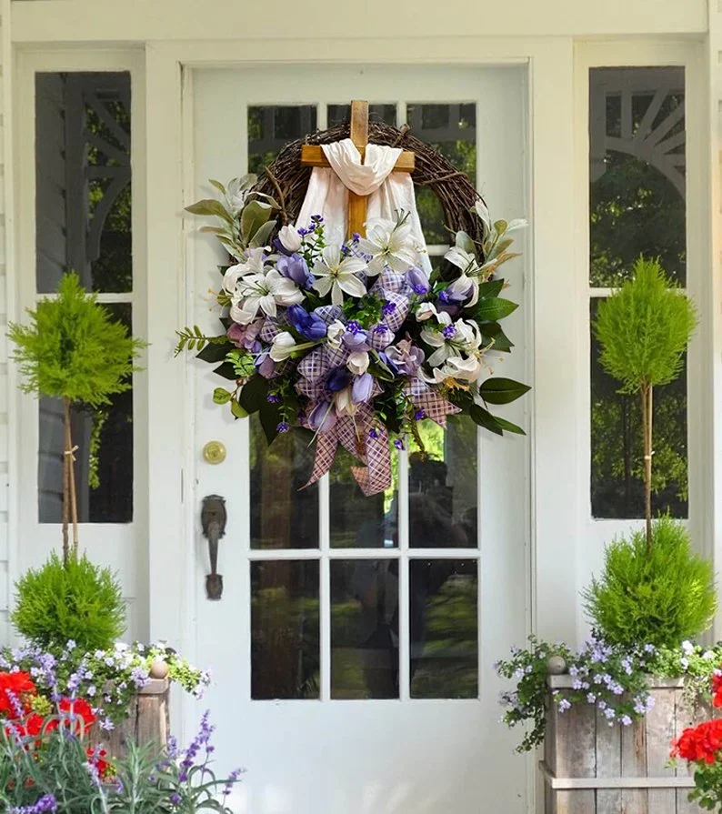 Easter Wreath with Cross for Front Door|Religious Easter Spring Wreath