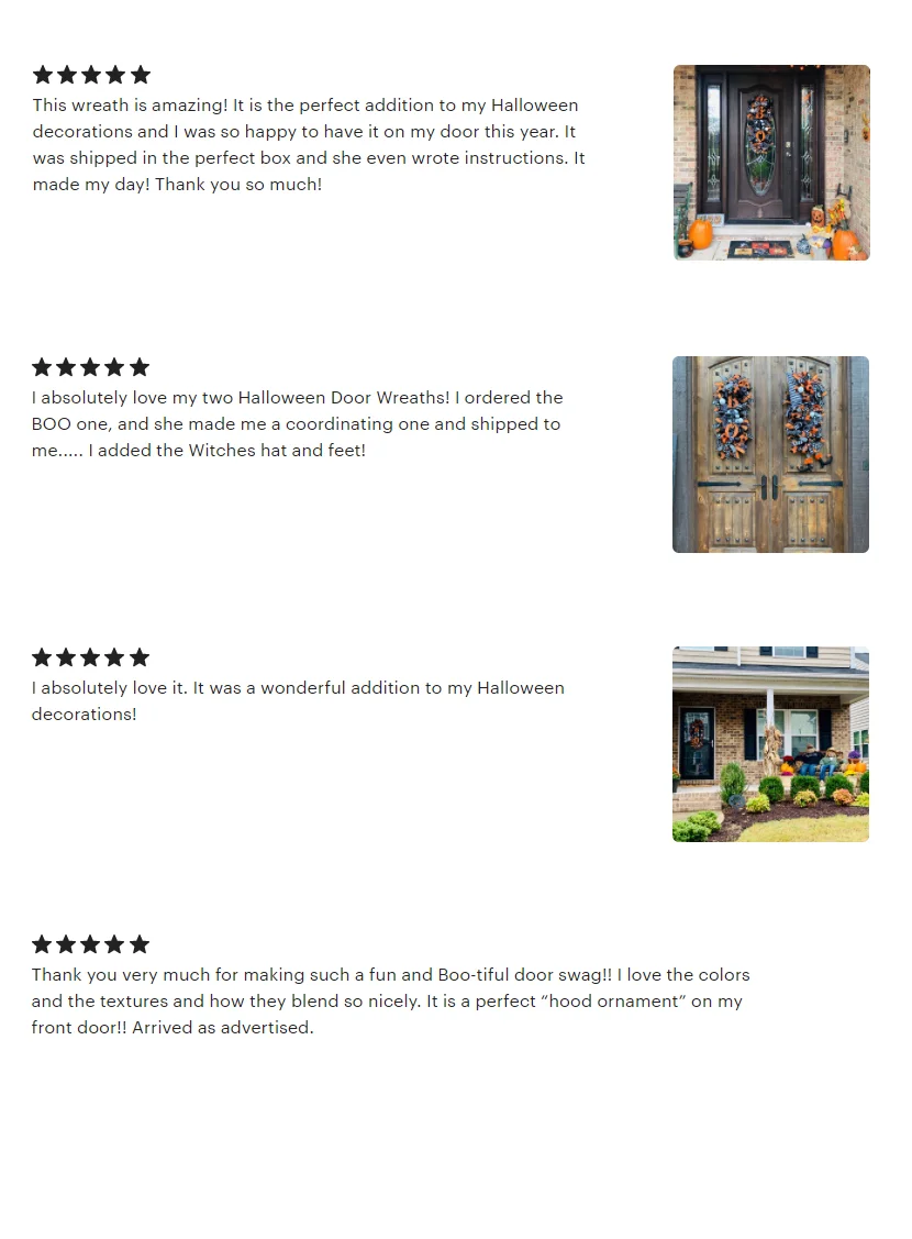 Exquisite craftsmanship Our Halloween Swag Wreath is handcrafted by experienced workers. We pay attention to every detail of our products.